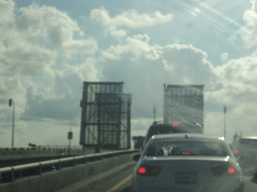 | We see the flyover opening up to give way to a really tall ship passing underway |