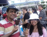 And as expected there was a long queue at the entrance. To get to Magic Kingdom we had to take the train or the ferry. We, like all the others stood in the line of the train. The train was more in demand ‘cuz it was much faster and efficient. The heat made me feel like fire. The line was moving very slowly at first. After some time it stopped moving altogether! It turned out that the train had stopped working! And instead everyone, thats right, that tremendously HUGE line, had to go by ferry. So everyone rushed towards the queues of the ferry. Thankfully we got a good spot in the queue and were able to get into the very first ferry which went there.