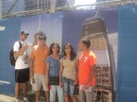 | Everyone crowds in front of a picture of what the WTC will look like once it’s complete |