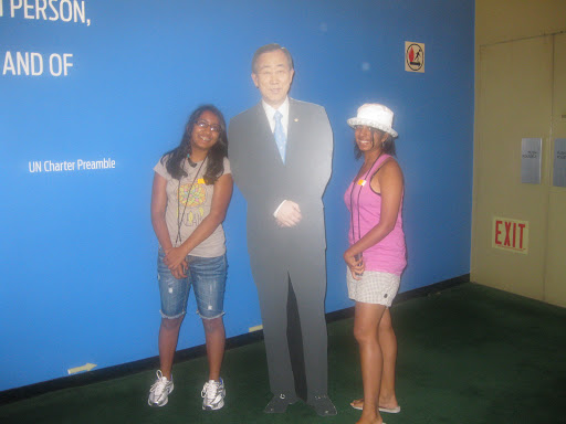 | My cousin and I next to Ban-ki-moon, UN secretary general