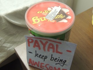 | An anonymous gift found outside my room door. Perfect timing, I was so hungry. |