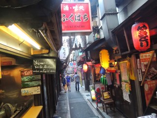 | Omoide Yokocho-a small lane in Shinjuku comprising of Izakayas-it was built post-war in the 1940s and was one of the first things to come up in Shinjuku. Efforts are made to preserve it. There is much anger with respect to Korean and Chinese immigrants beginning to work in these izakayas. |