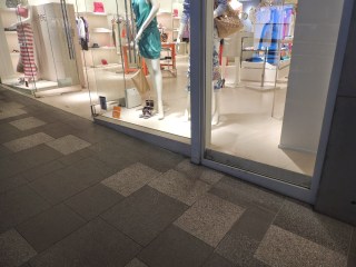 | The stores inside Omotesando Hills aren’t on a slope though (if you look carefully, there is a platform on the right side which raises the store to even ground), because it would be quite hazardous for the customers to have racks of clothes sliding and falling on them. |