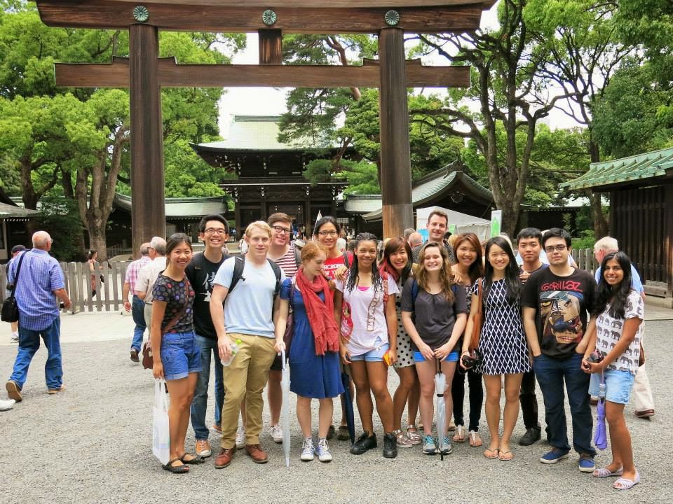 The whole group at the Meiji shrine, which was built in 1921-the pebbles on the ground are meant to keep more plants and trees from growing so that visitors have a walking path to the shrine. Photo credits: Stephanie Siow |