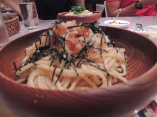 | We make a stop for lunch at an Italian place-I ordered a cod-roe Japanese pasta. |