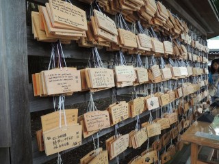 | Wishes and prayers of all languages hung on a rack besides the Meiji shrine |
