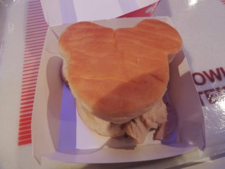 | A mickey shaped chicken deli sandwich at Tomorrow Land. Even though Disney food is expensive, the quality of it is amazing for mass produced fast food. |