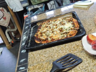 In the afternoon, we all made pizza for lunch. I learnt how to kneed pizza dough. We made a regular veggie pizza and also added some Japanese food to the meal by making miso pizza!
