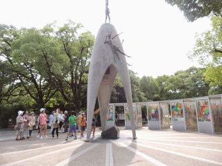 | Children’s Peace Monument, inspired by Sadako, a girl who was 2 years old at the time of the bombing but developed leukemia at the age of 10. She folded a 1000 paper cranes despite her pain, hoping to recover. Unfortunately, she couldn’t. |