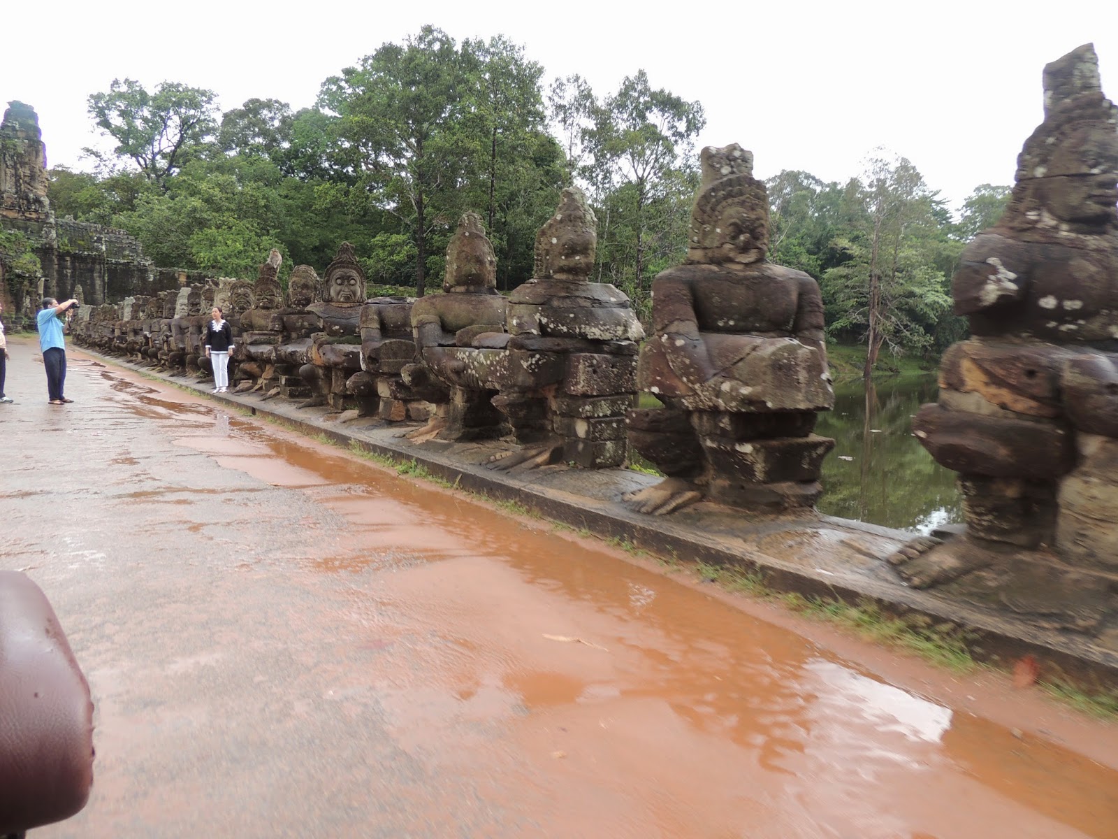 | While driving from one temple to another, we came across some great architecture. There were stories told through depictions on walls and statues built on railings, as if welcoming tourists. |
