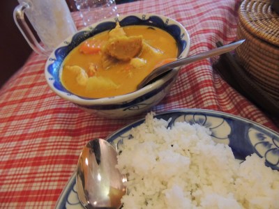 | I ate khmer curry, a coconut based curry with pumpkin, carrots and your choice of meat. |