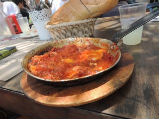 | A popular dish called Shakshuka. It’s tomato sauce with eggs and other veggies. Its typically eaten with bread. I learnt to cook it this week! |