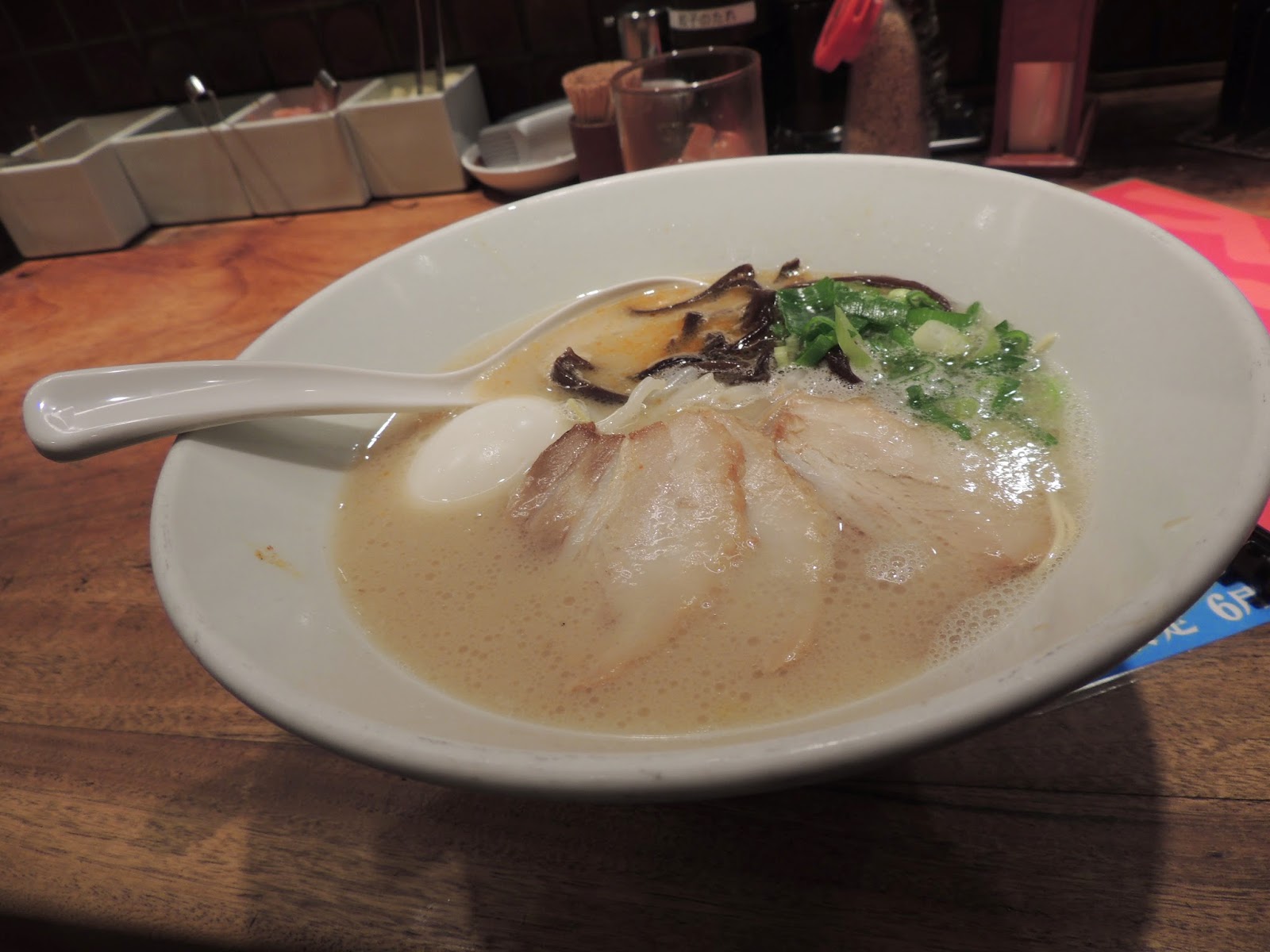 | Ippudo’s original Tonkotsu broth (pork bone) with Hakata style ramen (one of the many types of ramen) |