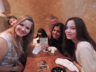 | Bianca, Sophie and I with some of our new friends (blurry in the background) at a Karoake bar |
