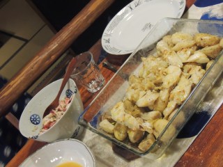 For dinner, Kaori-san made Okonomiyaki, which is a type of Japanese pancake. A batter is made of wheat and cabbage among other kinds of vegetables and meat. Just before eating, it is placed on a sort of portable frying pan along with slices of pork. The pork forms the crust of the Okonomiyaki. After the meat turns red-ish in color, the Okonomiyaki is eaten with sauce, mayonnaise, a bit of seaweed and bonito flakes.